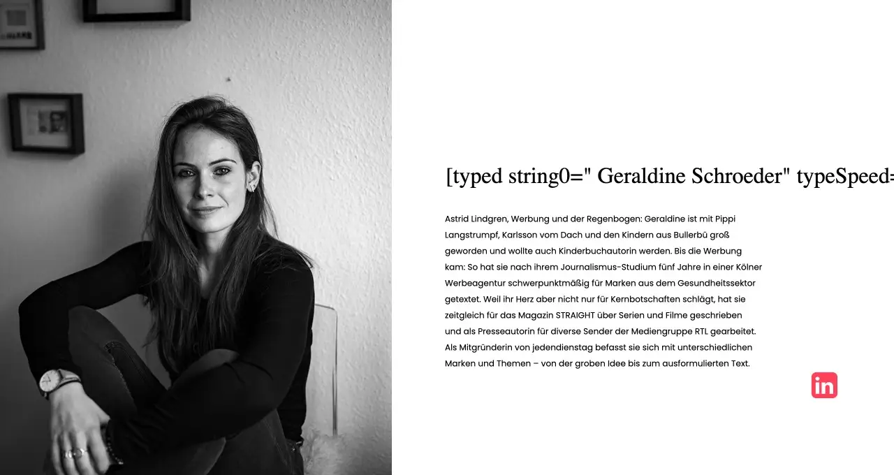 Als Mitgründerin von jedendienstag befasst sie sich mit unterschiedlichen